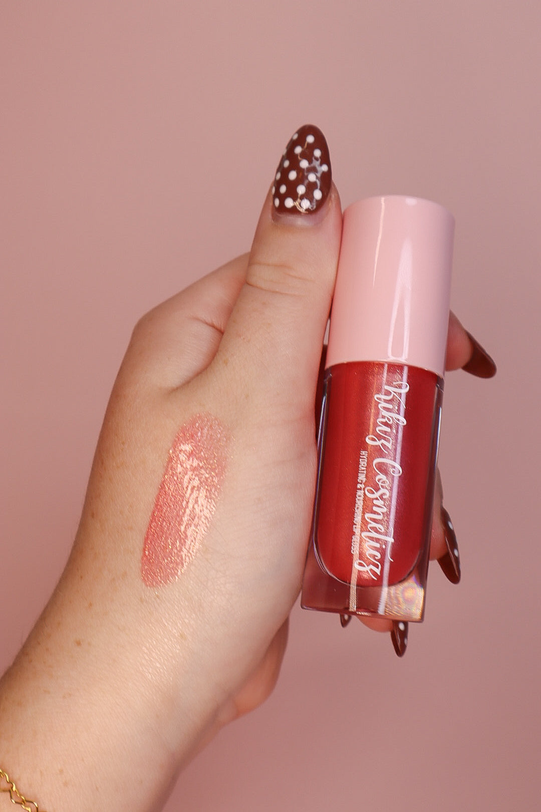 Coral pink shimmer with red and gold glitter